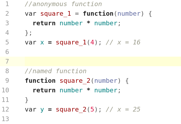 Na początek będą nas interesowały dwa sposoby zdefiniowania funkcji - anonymous function oraz named function: