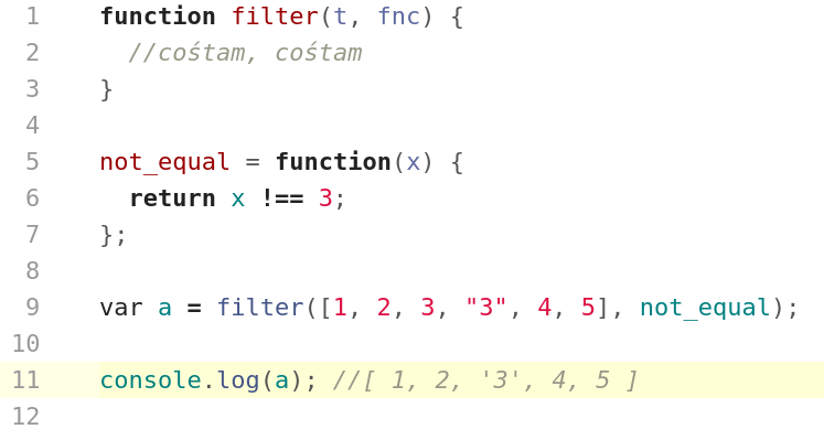 Funkcja ma zwracać nową tablicę w której znajdą się te elementy z a, dla których funkcja f zwróciła True.