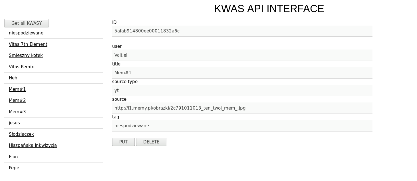 Po ostatnich zajęciach powinna być już gotowa strona wyświetająca linki do wszystkich kwasów z KWAS API, dodaj do niej możliwość usuwania wybranych kwasów, można to zrobić na wiele różnych sposobów! Przykład: