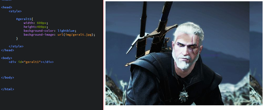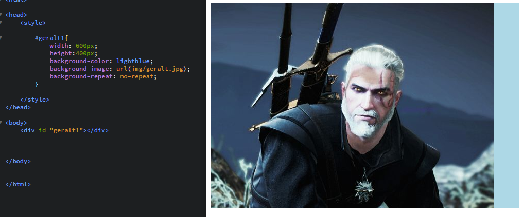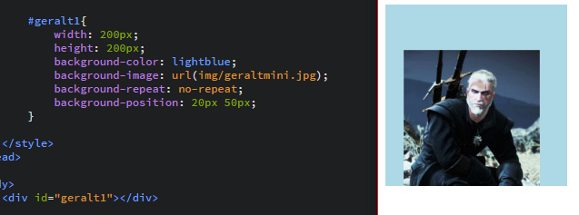 Jak widzimy, obraz nie zmieścił się do div'a więc został zduplikowany po prawej stronie. Możemy oczywiście ustalić, że nasz obraz wyświetla się tylko raz, a gdy się nie zmieści niech użyje koloru, który ustawiliśmy jako background-color. Wystarczy użyć własności background-repeat, która przyjmuje wartości: repeat(czyli obrazek się powtarza), repeat-x(obrazek się powtarza, ale tylko gdy obrazek jest za krótki na szerokość), repeat-y(obrazek się powtarza, ale tylko gdy obrazek jest za krótki na wysokość), no-repeat(obrazek się nie powtarza).
