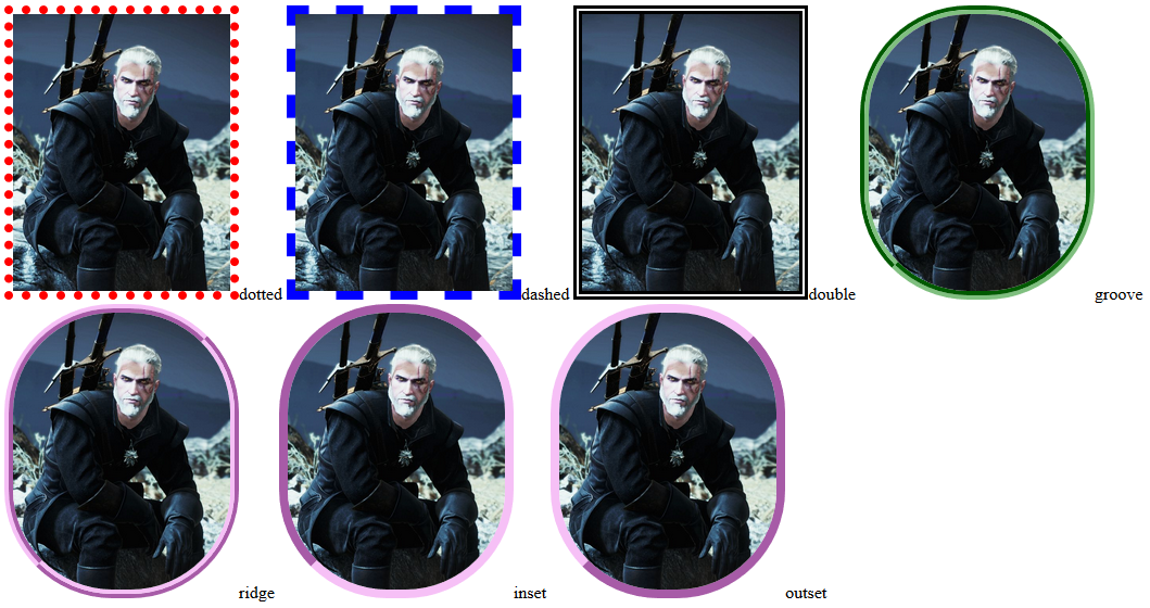 Możliwości obrmowań jest naprawdę dużo. Zacznijmy od podstawowej własności border. Przyjmuje ona 3 wartości: grubość (w pikselach), styl i kolor(w wybranej notacji). Jakie są style do wyboru?