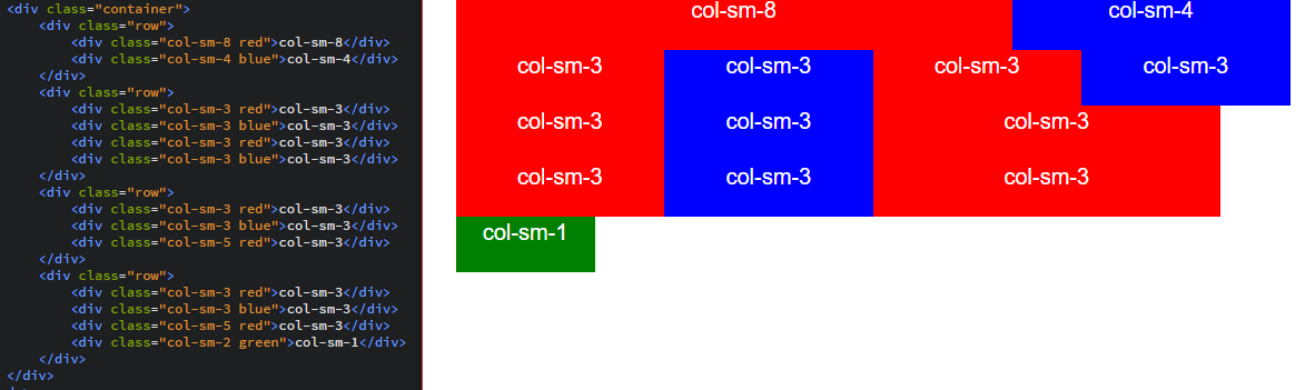 Do pełnego zrozumienia jak to działa zachęcam do lektury tego artykułu. Bootstrap pozwala nam wygodnie podzielić nam artykuł na kolumny, które dostosowują swoją wielkość do ekranu komputera. Służą do tego klasy col. Jeśli chcemy aby kolumny przechodziły do następnej linii gdy ekran będzie mniejszy dopisujemy do klasy np. -sm, a na końcu liczbę z przedziału od 1 do 12. Zobaczmy przykład: